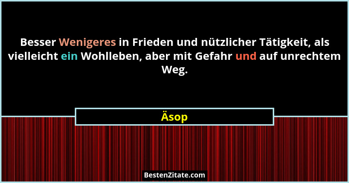 Besser Wenigeres in Frieden und nützlicher Tätigkeit, als vielleicht ein Wohlleben, aber mit Gefahr und auf unrechtem Weg.