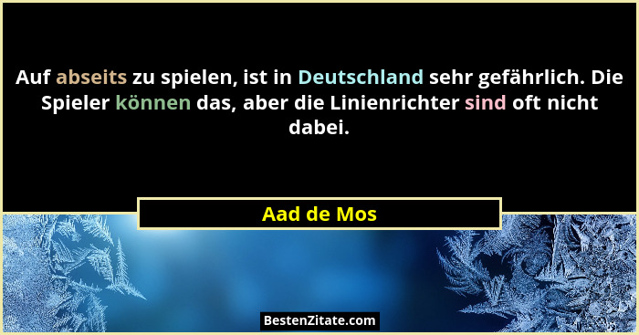 Auf abseits zu spielen, ist in Deutschland sehr gefährlich. Die Spieler können das, aber die Linienrichter sind oft nicht dabei.