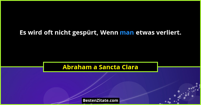 Es wird oft nicht gespürt, Wenn man etwas verliert.