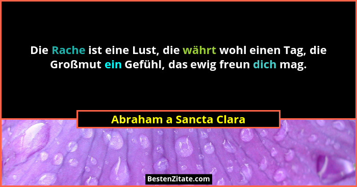 Die Rache ist eine Lust, die währt wohl einen Tag, die Großmut ein Gefühl, das ewig freun dich mag.