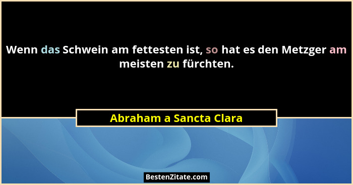 Wenn das Schwein am fettesten ist, so hat es den Metzger am meisten zu fürchten.
