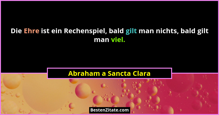 Die Ehre ist ein Rechenspiel, bald gilt man nichts, bald gilt man viel.