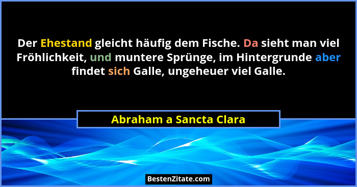 Der Ehestand gleicht häufig dem Fische. Da sieht man viel Fröhlichkeit, und muntere Sprünge, im Hintergrunde aber findet sich Galle, ungeheuer viel Galle.