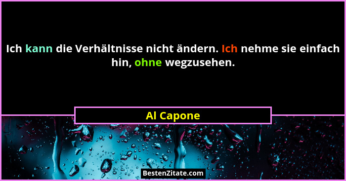 Ich kann die Verhältnisse nicht ändern. Ich nehme sie einfach hin, ohne wegzusehen.