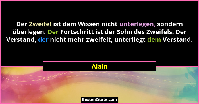 Der Zweifel ist dem Wissen nicht unterlegen, sondern überlegen. Der Fortschritt ist der Sohn des Zweifels. Der Verstand, der nicht mehr zweifelt, unterliegt dem Verstand.