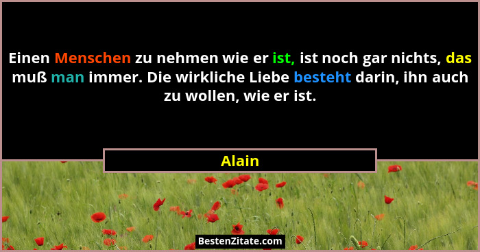 Einen Menschen zu nehmen wie er ist, ist noch gar nichts, das muß man immer. Die wirkliche Liebe besteht darin, ihn auch zu wollen, wie er ist.