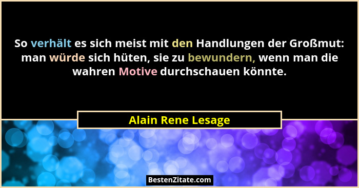 So verhält es sich meist mit den Handlungen der Großmut: man würde sich hüten, sie zu bewundern, wenn man die wahren Motive durchschauen könnte.