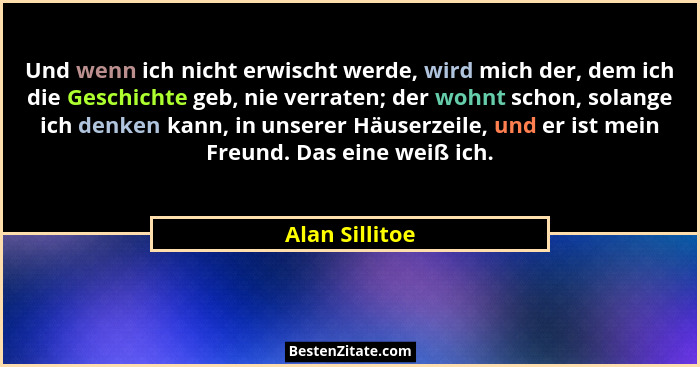 Und wenn ich nicht erwischt werde, wird mich der, dem ich die Geschichte geb, nie verraten; der wohnt schon, solange ich denken kann, in unserer Häuserzeile, und er ist mein Freund. Das eine weiß ich.