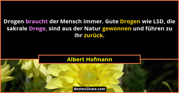 Drogen braucht der Mensch immer. Gute Drogen wie LSD, die sakrale Droge, sind aus der Natur gewonnen und führen zu ihr zurück.