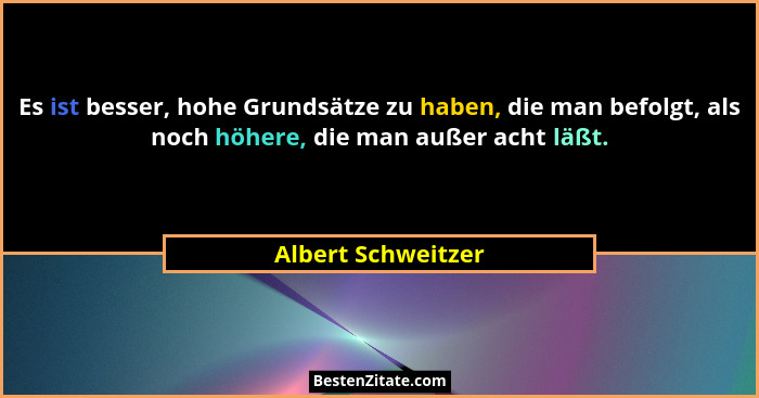 Es ist besser, hohe Grundsätze zu haben, die man befolgt, als noch höhere, die man außer acht läßt.