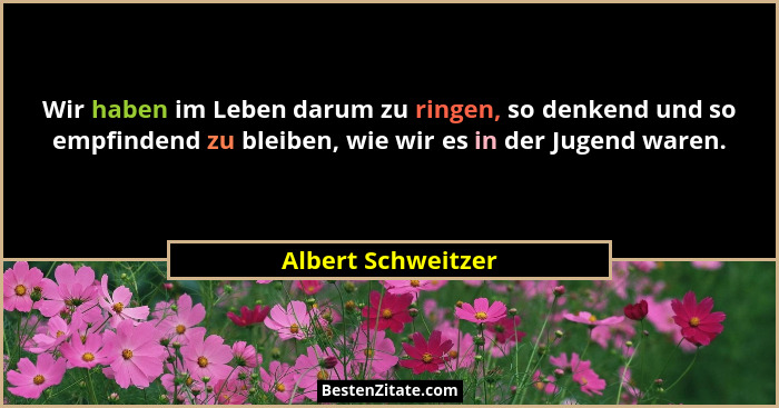 Wir haben im Leben darum zu ringen, so denkend und so empfindend zu bleiben, wie wir es in der Jugend waren.