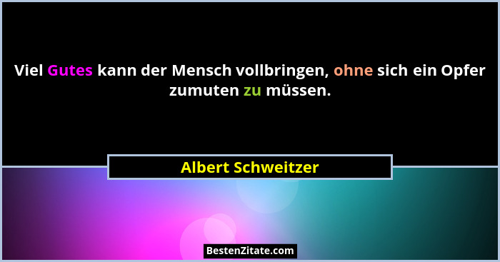 Viel Gutes kann der Mensch vollbringen, ohne sich ein Opfer zumuten zu müssen.