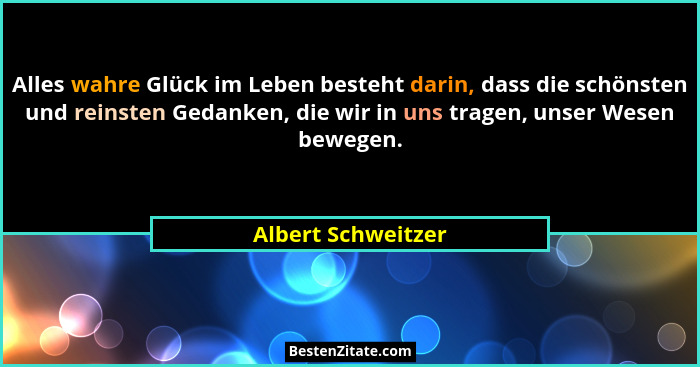 Alles wahre Glück im Leben besteht darin, dass die schönsten und reinsten Gedanken, die wir in uns tragen, unser Wesen bewegen.