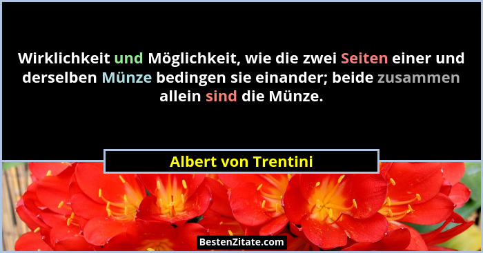 Wirklichkeit und Möglichkeit, wie die zwei Seiten einer und derselben Münze bedingen sie einander; beide zusammen allein sind die Münze.