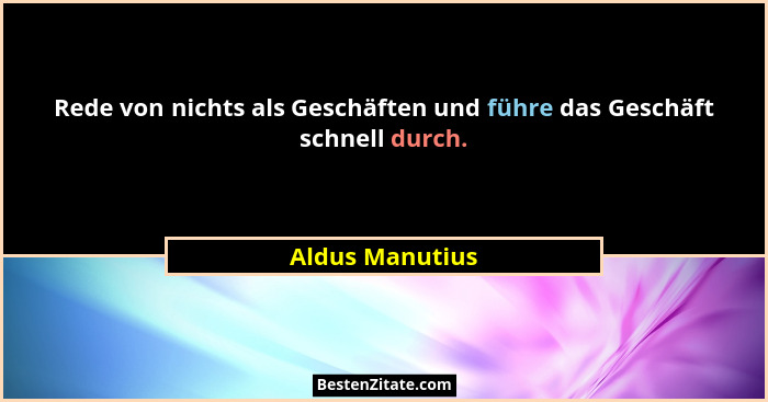 Rede von nichts als Geschäften und führe das Geschäft schnell durch.