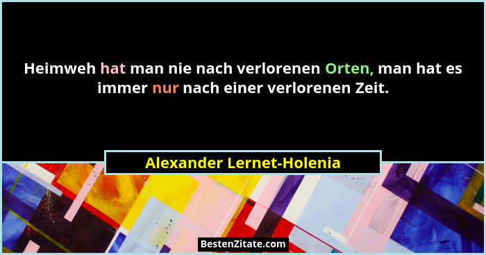 Heimweh hat man nie nach verlorenen Orten, man hat es immer nur nach einer verlorenen Zeit.
