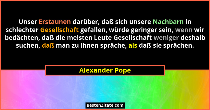 Unser Erstaunen darüber, daß sich unsere Nachbarn in schlechter Gesellschaft gefallen, würde geringer sein, wenn wir bedächten, daß die meisten Leute Gesellschaft weniger deshalb suchen, daß man zu ihnen spräche, als daß sie sprächen.