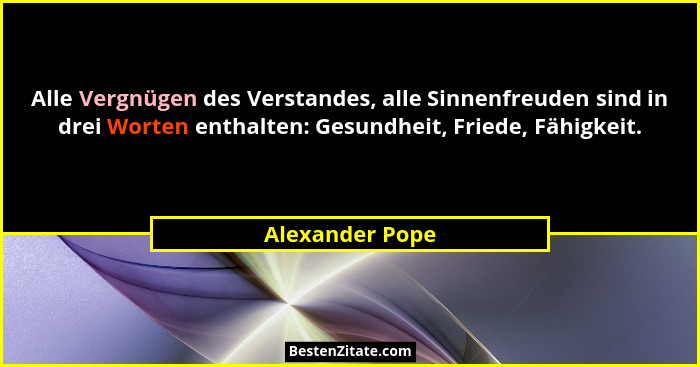 Alle Vergnügen des Verstandes, alle Sinnenfreuden sind in drei Worten enthalten: Gesundheit, Friede, Fähigkeit.