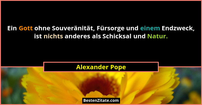 Ein Gott ohne Souveränität, Fürsorge und einem Endzweck, ist nichts anderes als Schicksal und Natur.