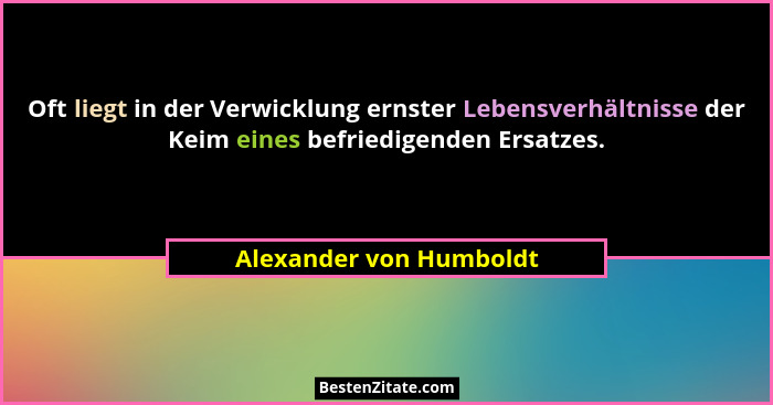 Oft liegt in der Verwicklung ernster Lebensverhältnisse der Keim eines befriedigenden Ersatzes.