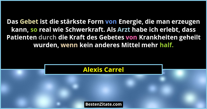 Das Gebet ist die stärkste Form von Energie, die man erzeugen kann, so real wie Schwerkraft. Als Arzt habe ich erlebt, dass Patienten durch die Kraft des Gebetes von Krankheiten geheilt wurden, wenn kein anderes Mittel mehr half.