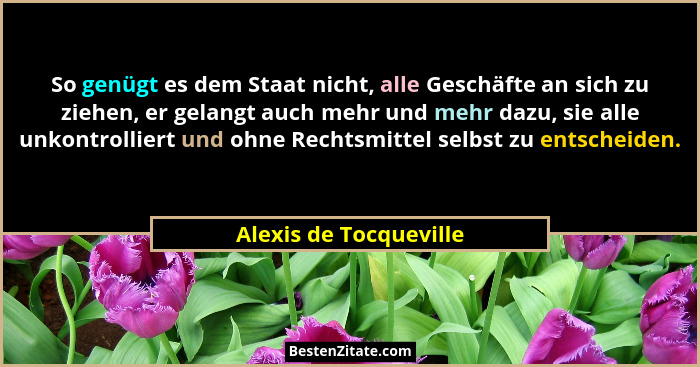 So genügt es dem Staat nicht, alle Geschäfte an sich zu ziehen, er gelangt auch mehr und mehr dazu, sie alle unkontrolliert und ohne Rechtsmittel selbst zu entscheiden.