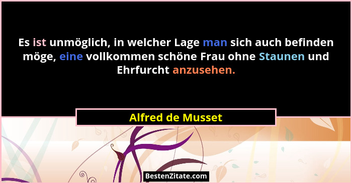 Es ist unmöglich, in welcher Lage man sich auch befinden möge, eine vollkommen schöne Frau ohne Staunen und Ehrfurcht anzusehen.