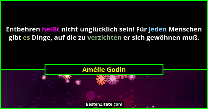 Entbehren heißt nicht unglücklich sein! Für jeden Menschen gibt es Dinge, auf die zu verzichten er sich gewöhnen muß.