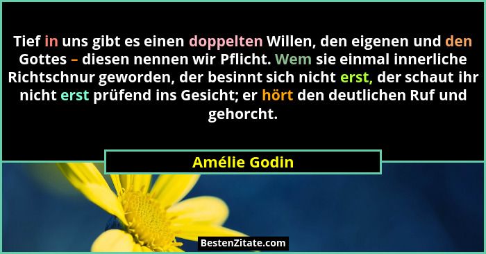 Tief in uns gibt es einen doppelten Willen, den eigenen und den Gottes – diesen nennen wir Pflicht. Wem sie einmal innerliche Richtschnur geworden, der besinnt sich nicht erst, der schaut ihr nicht erst prüfend ins Gesicht; er hört den deutlichen Ruf und gehorcht.