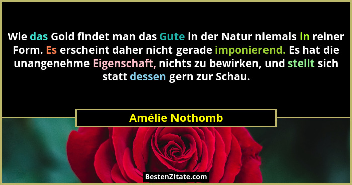 Wie das Gold findet man das Gute in der Natur niemals in reiner Form. Es erscheint daher nicht gerade imponierend. Es hat die unangenehme Eigenschaft, nichts zu bewirken, und stellt sich statt dessen gern zur Schau.