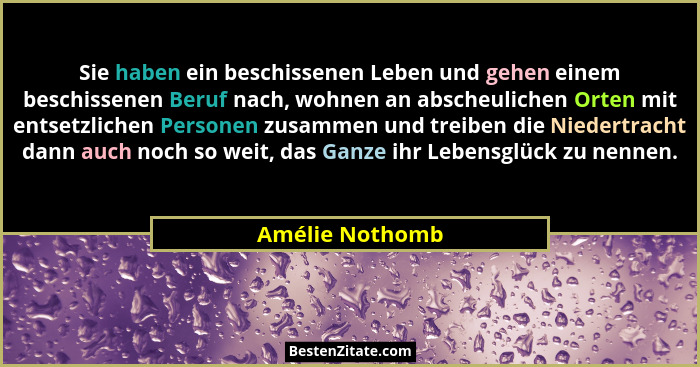 Sie haben ein beschissenen Leben und gehen einem beschissenen Beruf nach, wohnen an abscheulichen Orten mit entsetzlichen Personen zusammen und treiben die Niedertracht dann auch noch so weit, das Ganze ihr Lebensglück zu nennen.