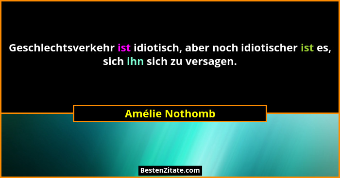 Geschlechtsverkehr ist idiotisch, aber noch idiotischer ist es, sich ihn sich zu versagen.
