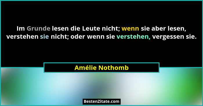 Im Grunde lesen die Leute nicht; wenn sie aber lesen, verstehen sie nicht; oder wenn sie verstehen, vergessen sie.