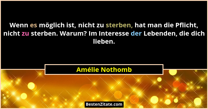 Wenn es möglich ist, nicht zu sterben, hat man die Pflicht, nicht zu sterben. Warum? Im Interesse der Lebenden, die dich lieben.