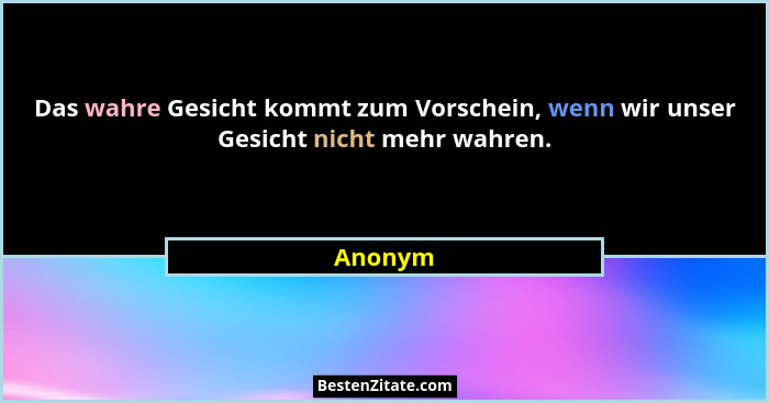 Das wahre Gesicht kommt zum Vorschein, wenn wir unser Gesicht nicht mehr wahren.
