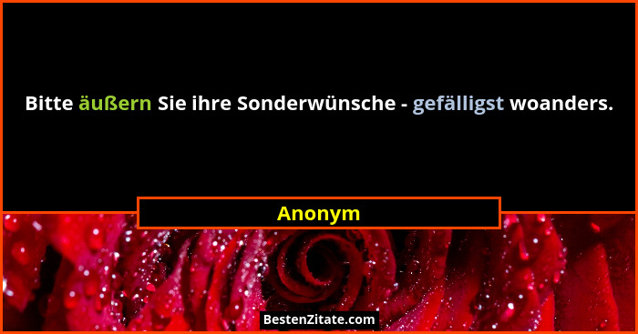 Bitte äußern Sie ihre Sonderwünsche - gefälligst woanders.