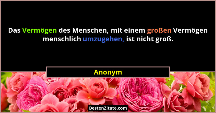 Das Vermögen des Menschen, mit einem großen Vermögen menschlich umzugehen, ist nicht groß.