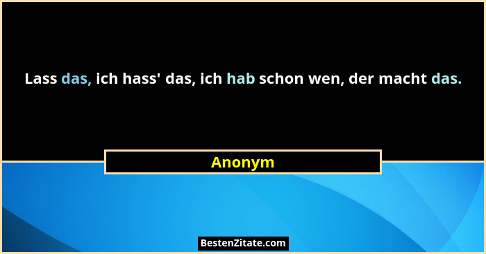 Lass das, ich hass' das, ich hab schon wen, der macht das.