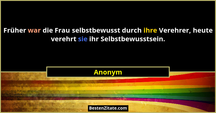 Früher war die Frau selbstbewusst durch ihre Verehrer, heute verehrt sie ihr Selbstbewusstsein.