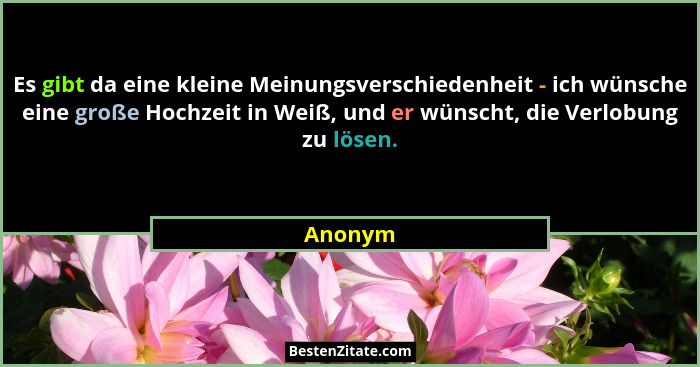 Es gibt da eine kleine Meinungsverschiedenheit - ich wünsche eine große Hochzeit in Weiß, und er wünscht, die Verlobung zu lösen.