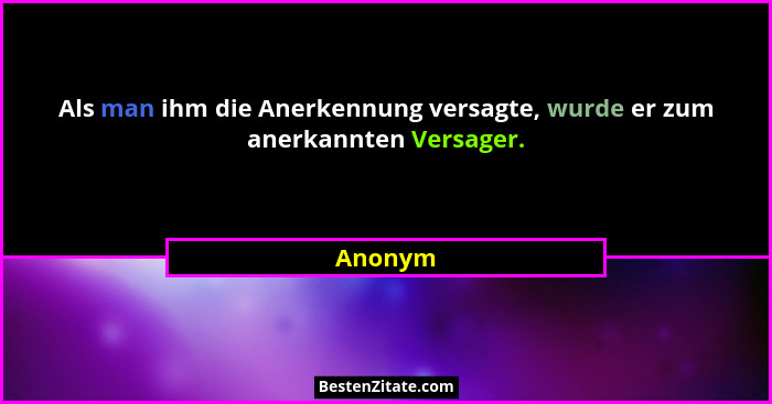 Als man ihm die Anerkennung versagte, wurde er zum anerkannten Versager.