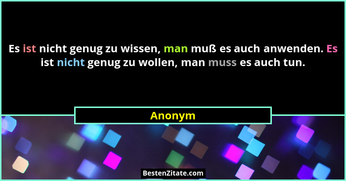 Es ist nicht genug zu wissen, man muß es auch anwenden. Es ist nicht genug zu wollen, man muss es auch tun.