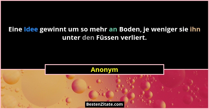 Eine Idee gewinnt um so mehr an Boden, je weniger sie ihn unter den Füssen verliert.