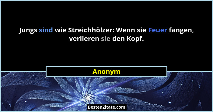 Jungs sind wie Streichhölzer: Wenn sie Feuer fangen, verlieren sie den Kopf.