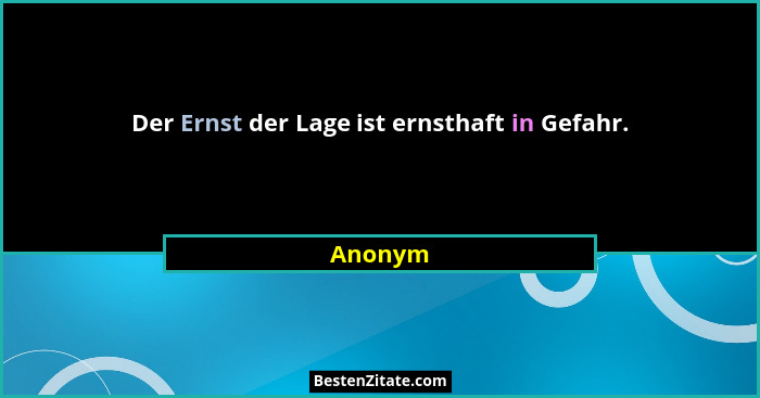 Der Ernst der Lage ist ernsthaft in Gefahr.