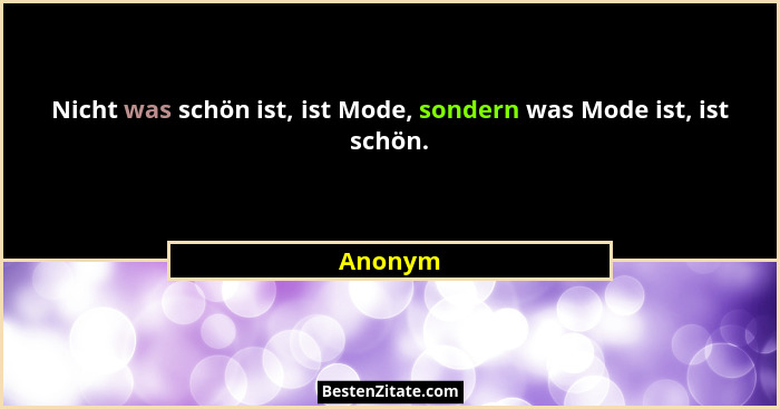 Nicht was schön ist, ist Mode, sondern was Mode ist, ist schön.