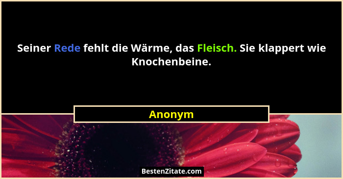 Seiner Rede fehlt die Wärme, das Fleisch. Sie klappert wie Knochenbeine.