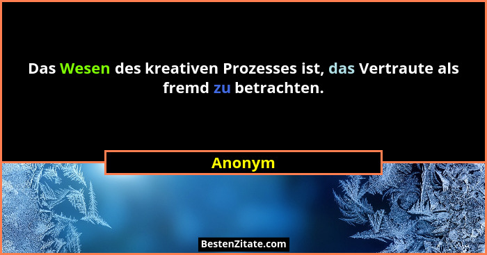 Das Wesen des kreativen Prozesses ist, das Vertraute als fremd zu betrachten.