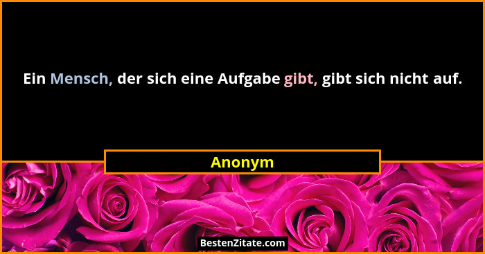 Ein Mensch, der sich eine Aufgabe gibt, gibt sich nicht auf.