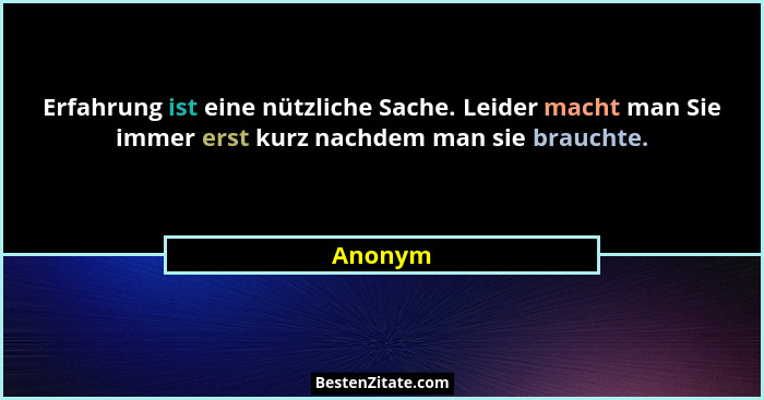 Erfahrung ist eine nützliche Sache. Leider macht man Sie immer erst kurz nachdem man sie brauchte.
